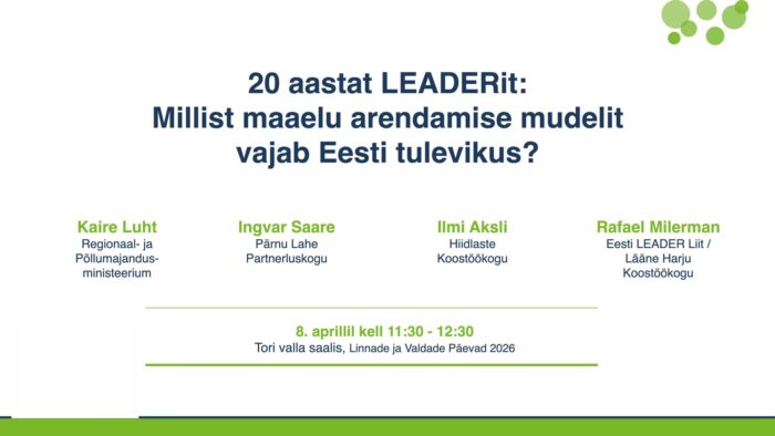 Kokkuvõttes jäi paneeldiskussioonist kõlama selge sõnum: LEADERi suurim väärtus on kohalik teadmine, võrgustikud ja võime siduda kogukonnad, ettevõtjad ning omavalitsused ühisesse arengusse. Muutusi süsteemis peetakse võimalikuks ja kohati vajalikuks, kuid mitte ühtlustamise või mehaanilise kärpimise loogikas. Tuleviku mudel peaks hoidma alles LEADERi kohapõhisuse, paindlikkuse ja arendusorganisatsiooni rolli, sest just nendes omadustes peitub selle programmi tegelik lisandväärtus Eesti maaelu jaoks.